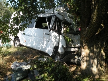 От мощного удара уже неуправляемый микроавтобус выехал в кювет, где совершил наезд на дерево.