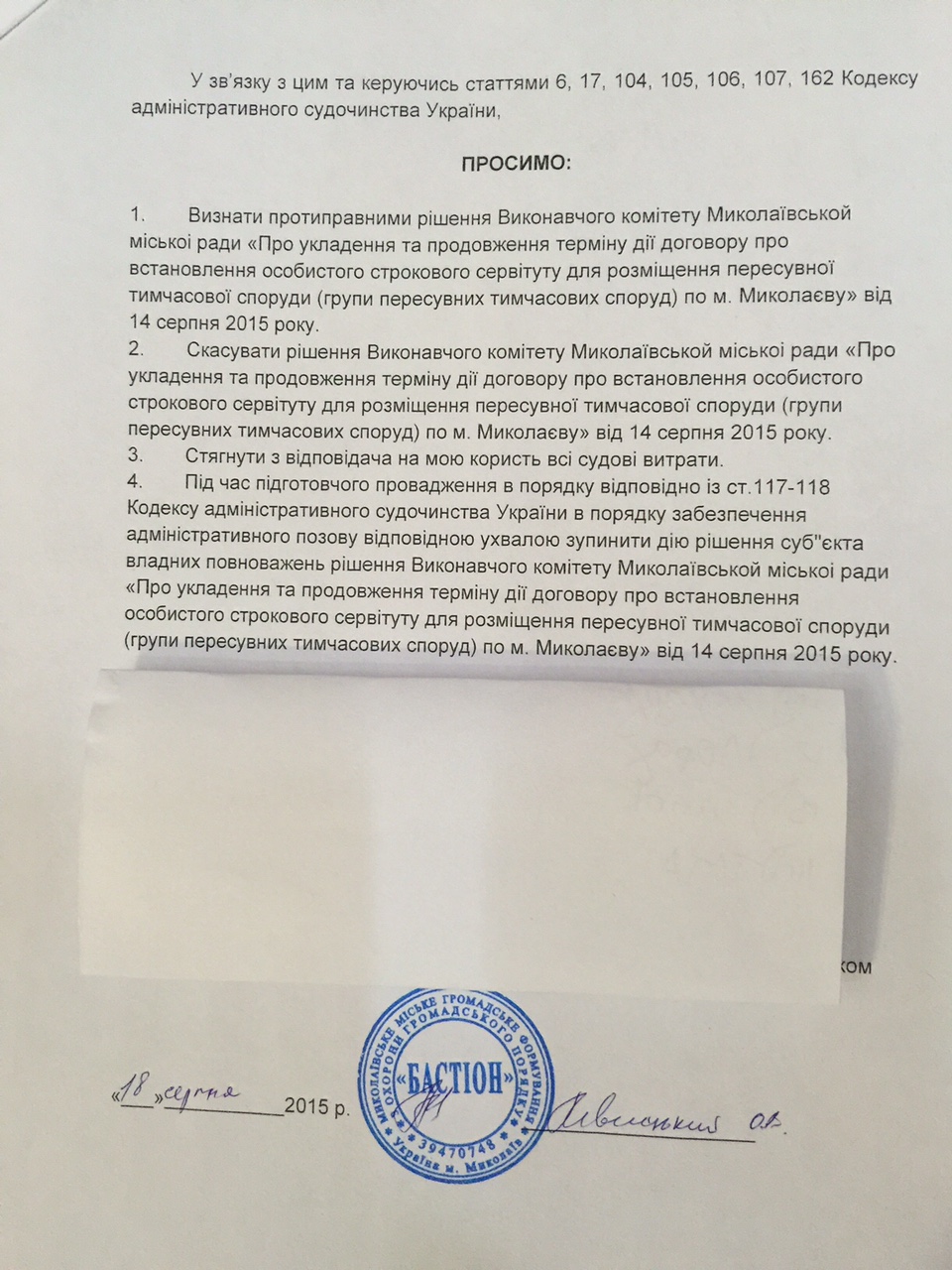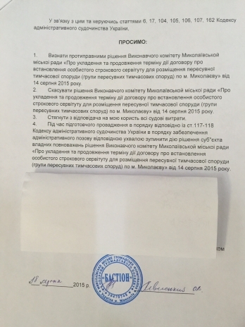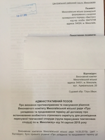 Николаевское городское общественное формирование по охране общественного порядка «Бастион» обратилось в Центральный районный суд с иском о признании противоправным и отмене скандального решения исполкома об узаконивании киосков «Позвони» на Советской.