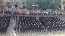 Сегодня, 23 августа, на площади Рынок во Львове более 400 полицейских приняли присягу на верность украинскому народу.