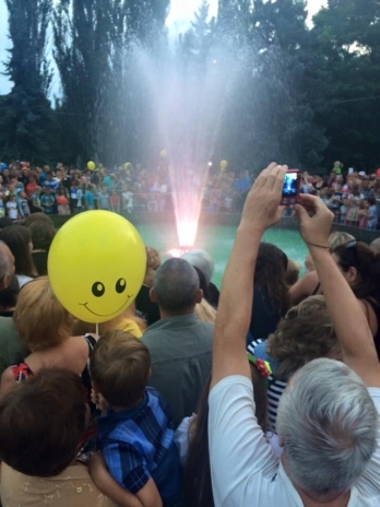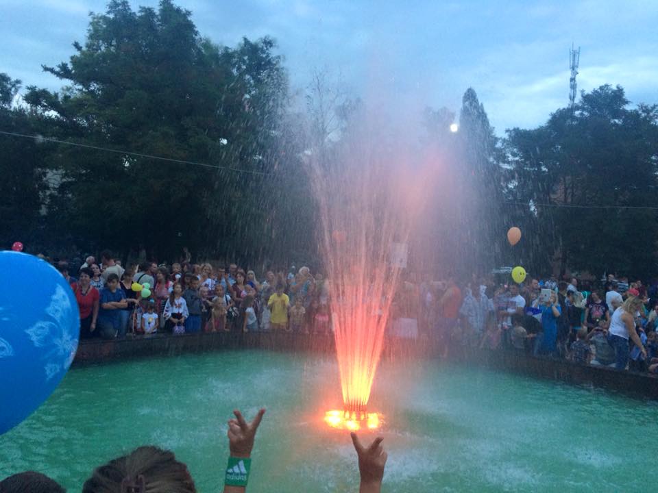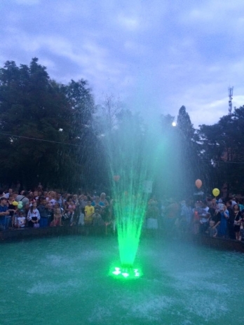В Очакове ко Дню государственного флага на центральной площади города появился световой фонтан.