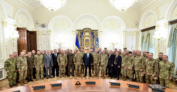 Среди тех, кому было присвоено очередное офицерское звание, Порошенко отметил первого заместителя командующего Сухопутных войск Вооруженных Сил Украины генерал-лейтенанта Андрея Тарана; первого заместителя командующего войск оперативного командования "Север" Сухопутных войск ВСУ генерал-майора Андрея Грищенко. Начальника 169-го учебного гвардейского центра Сухопутных войск Вооруженных Сил Украины генерал-майора Олега Микаца Порошенко назвал примером того, как укрепляются украинские Вооруженные Силы. Отдельно президент отметил первого заместителя командующего высокомобильных десантных войск ВСУ генерал-майора Юрия Содоля и его командование десантниками.