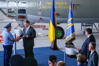 — Сегодня мы также передаем Воздушным Силам ВСУ, бригаде транспортной авиации (15-й бригаде - ред.) в ответ на инициативу рабочего состава бригады самолет Ан-30Б. И я, конечно, пошел навстречу и подписал указ о присвоении имени Константина Могилко этому самолету, - сказал Петр Порошенко.