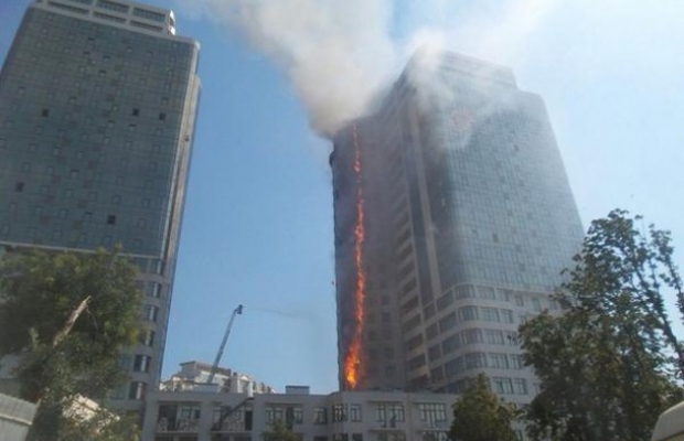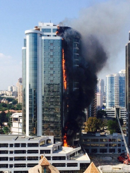 "По данным пресс-службы обл МЧС, загорелась обшивка стен на верхних этажах незаконченного строения комплекса на Генуэзской. На месте работают пожарные. С верхних этажей пожар распространился до первого. Горит обшивка. Огонь разрастается. Пожарные могут дотянуться только до 7 этажа", - говорится в сообщении.