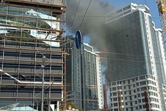 Как сообщается, пламя пылает на последних этажах комплекса "Гагарин Плаза". Также отмечается, что дом введен в эксплуатацию, но еще не заселен.