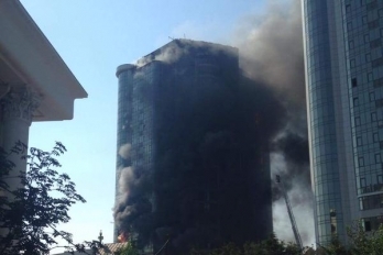 Как уточняется, пожар тушат с помощью двух высотных лестниц 30 и 50 метров. Но проблема заключается в том, что в рукавах не хватает давления, а в самом здании не предусмотрена внутренняя система пожаротушения.