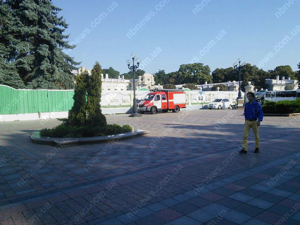 Митингующих от здания Рады отделяет цепочка бойцов Нацгвардии. Также дежурят пожарные машины.