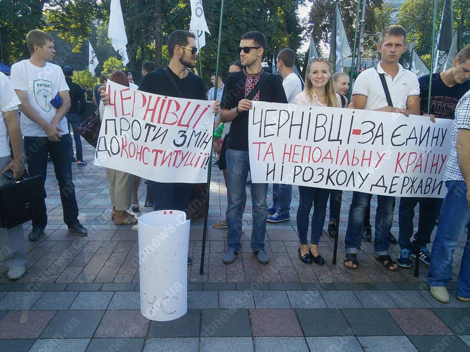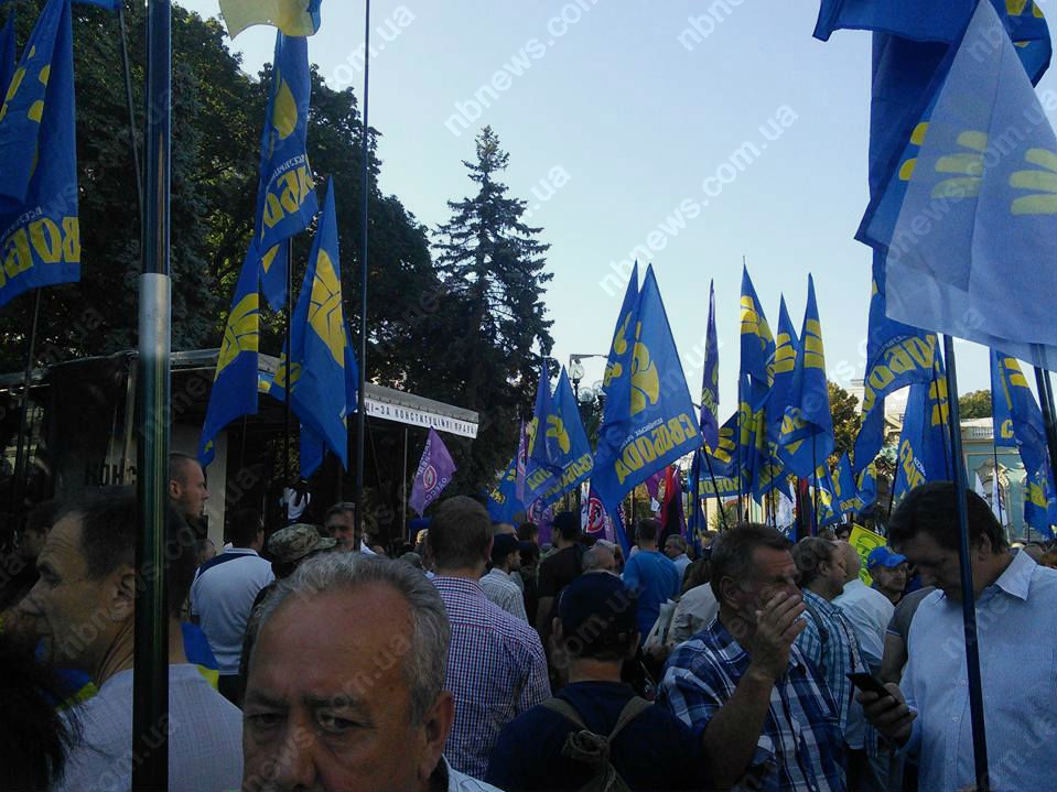 В понедельник, 31 августа, около 300 активистов ВО «Свобода» пикетируют здание Верховной Рады в Киеве с требованием не вносить изменения в Конституцию Украины в части децентрализации.