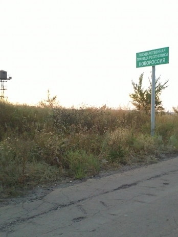 Там же стоит знак «государственная граница республики Новороссия». Отмечается, что забор установлен в районе пункта пропуска «Северный».