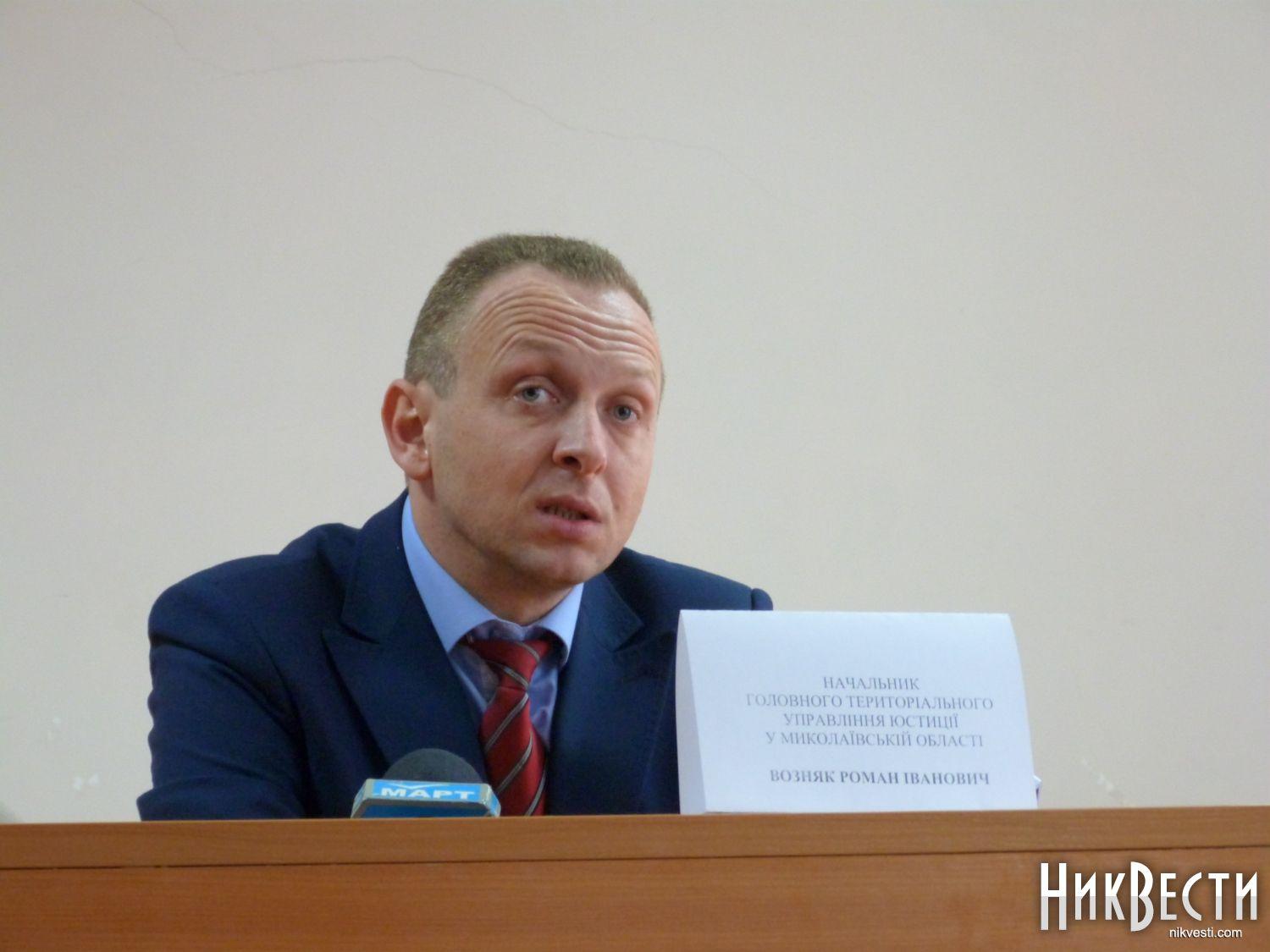 Об этом проинформировал начальник главного территориального управления юстиции Роман Возняк, сообщили в отделе информационно-аналитического обеспечения Николаевской ОГА.
