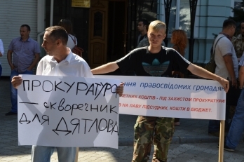 Активисты держали в руках плакаты с надписями «Прокурор стій на боці людей», «Прокуратура скворечник для Датлова» та «Бездіяльність прокуратури – злочин». С такими плакатами молча стояли девять человек, которые прикрывали лица руками. Остальные пикетчики находились в стороне. В этот раз под здание прокуратуры активисты принесли канистры с бензином.