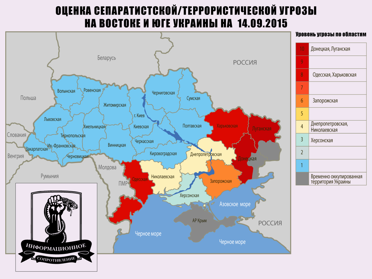 Группа военных экспертов «Информационное сопротивление» провела оценку сепаратистской/террористической угрозы на Востоке и Юге Украины. В частности, они зафиксировали некоторое повышение угрозы в Николаевской области. По мнению ИС, она выросла с 3 до 4 баллов по десятибалльной шкале.