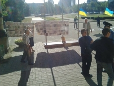 Сессию николаевского горсвета пикетируют жильцы дома, поврежденного из-за строительства, начатого банком