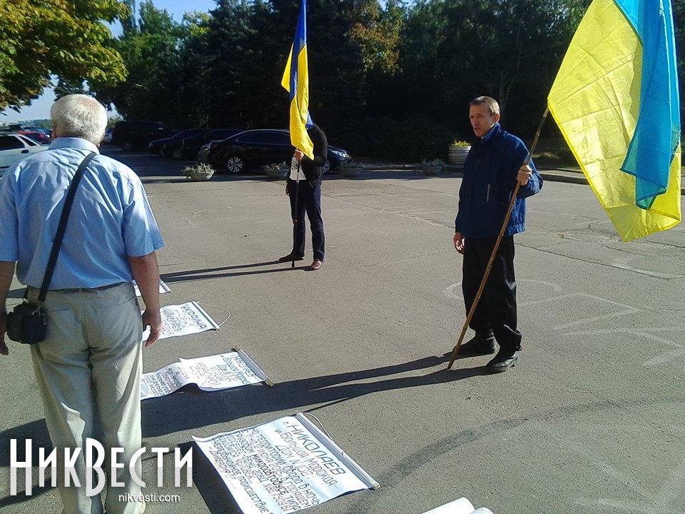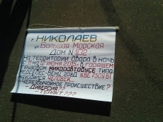 Второе пленарное заседание 49-й сессии Николаевского городского совета встретили 2 группы пикетчиков: о своих проблем пришли рассказать жильцы дома по улице Красных Маевщиков, 35 и владельцы квартир дома по улице Большой Морской, 102.