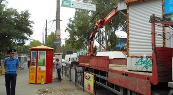 В Центральном районе демонтировали незаконный киоск, установленный на остановке