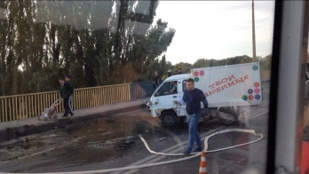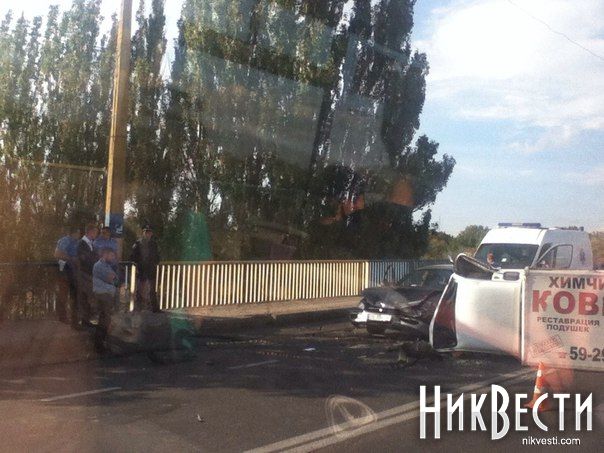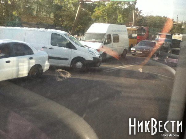 Во вторник, 6 октября, в Николаеве на Широкобальском мосту произошло еще одно дорожно-транспортное происшествие - на этот раз лоб в лоб столкнулись автомобиль «Opel» и небольшой грузовой автомобиль «Tata».