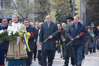 Сегодня, 14 октября, по случаю Дня защитника Украины состоялось торжественное возложение цветов к памятнику Героям Небесной сотни и к памятному комплексу героев-ольшанцев.