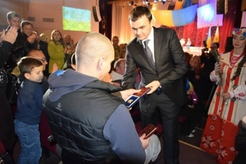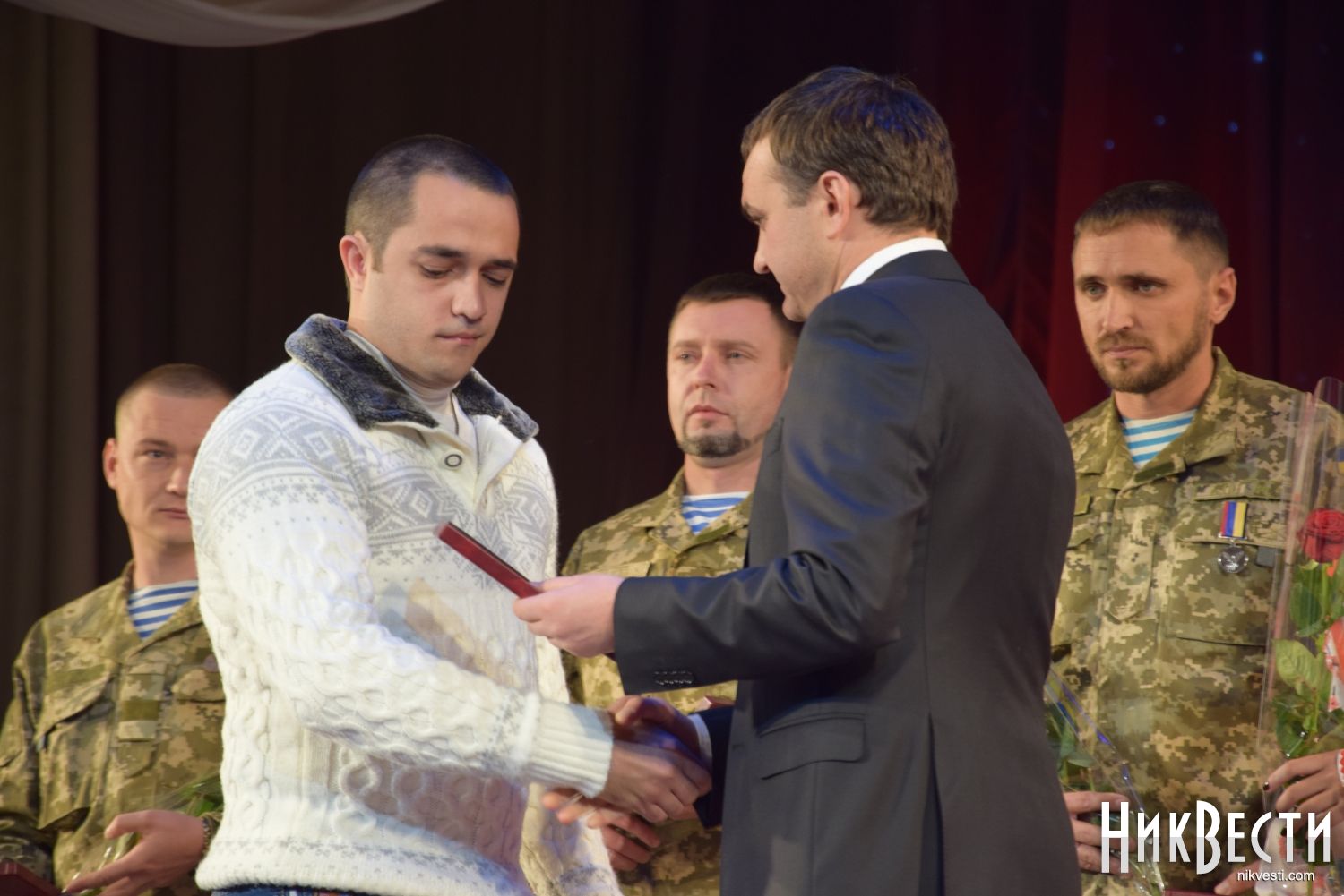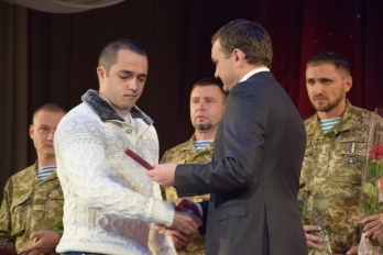 Руководитель области вручил государственные награды. Ордена «За мужество» III степени вручены солдату Василию Дзюбану, солдату Игорю Милькату, солдату Александру Бондаренко, старшему сержанту Максиму Максименко. Орденом «За мужество» III степени и нагрудным знаком Министерства обороны Украины «Знак почета» награжден старший солдат Евгений Цабий.