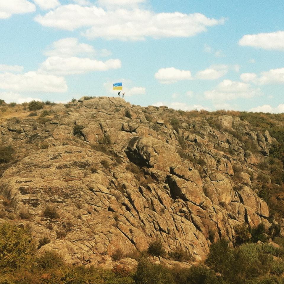 К 24-й годовщине Независимости Украины туристы могли наблюдать на гранитных склонах каньона огромный украинский флаг, который установили там жители села.