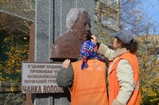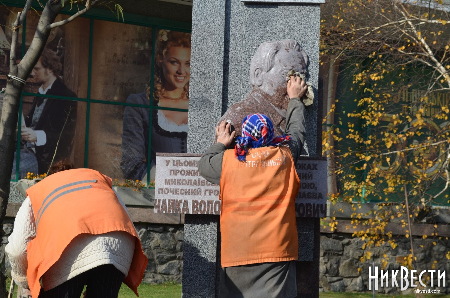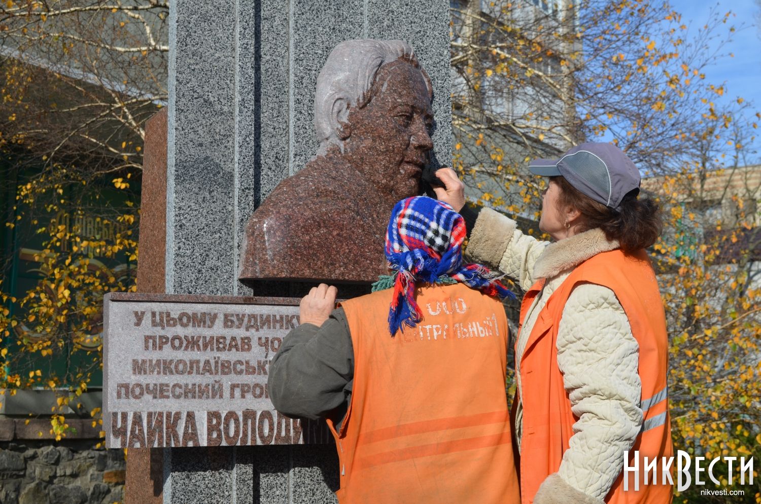 Вандалы разрисовали памятник бывшему мэру Николаева Владимиру Чайке
