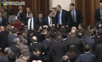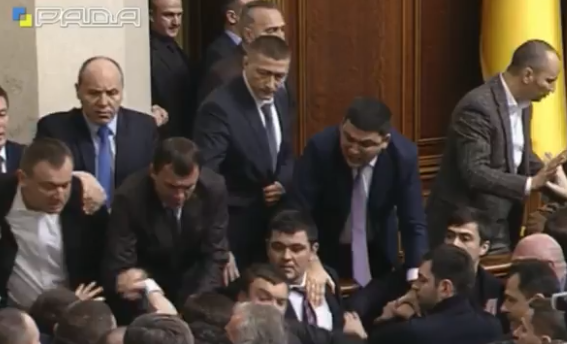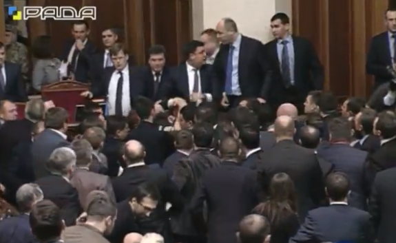 В Верховней Раде во время выступления премьера Арсения Яценюка произошла драка.