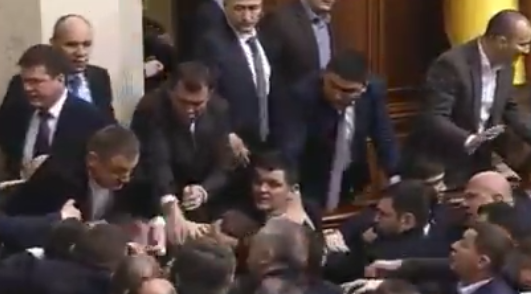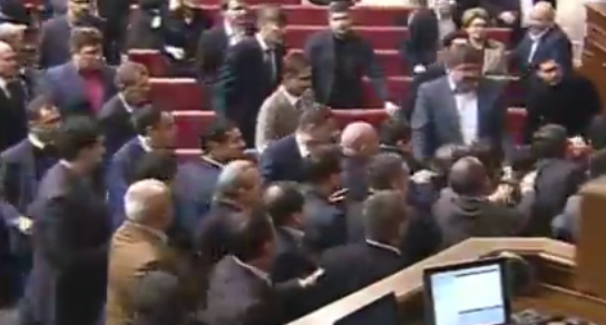 Депутаты сразу схлестнулись в драке, на несколько минут выступление премьера было прервано.
