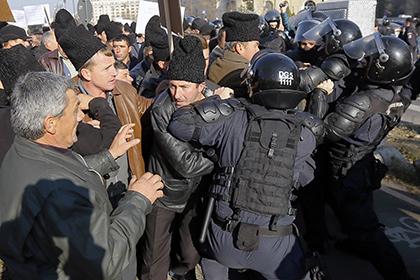 Участникам акции удалось прорвать полицейский кордон, окружающий здание. Стражи порядка пытались остановить толпу демонстрантов с помощью слезоточивого газа.