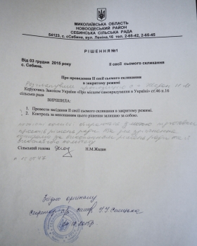 Кроме Себино на этом поприще отличился Трикратовский сельский совет Вознесенского района, который свою работу начал с того, что объявил сессию закрытой с последующим удалением людей из зала заседания.