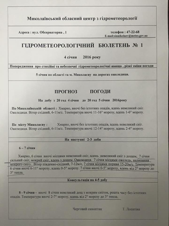 Гидрометеорологический бюллетень, подготовленный синоптиками, опубликовал мэр Николаева Александр Сенкевич на своей странице в Facebook.