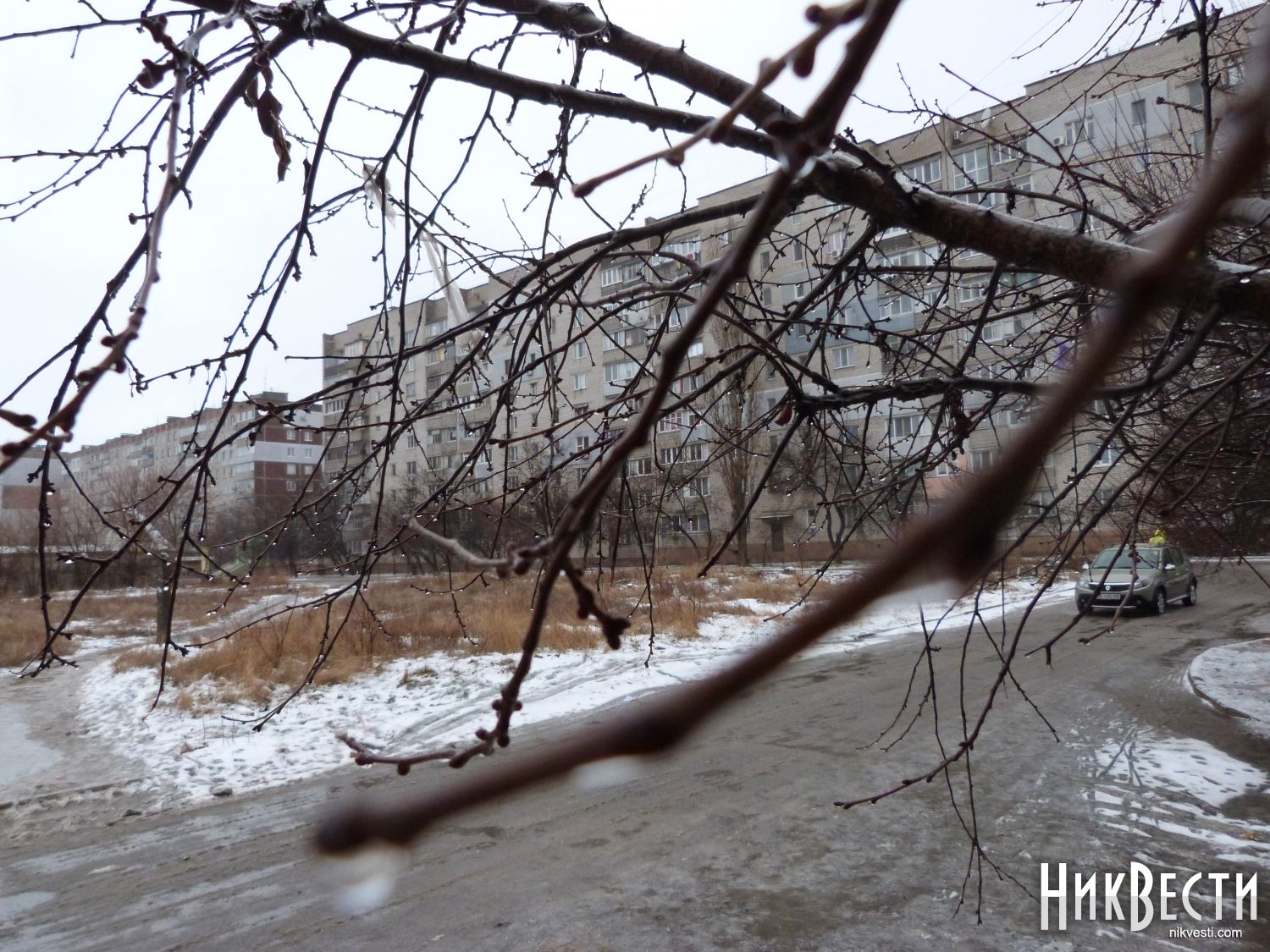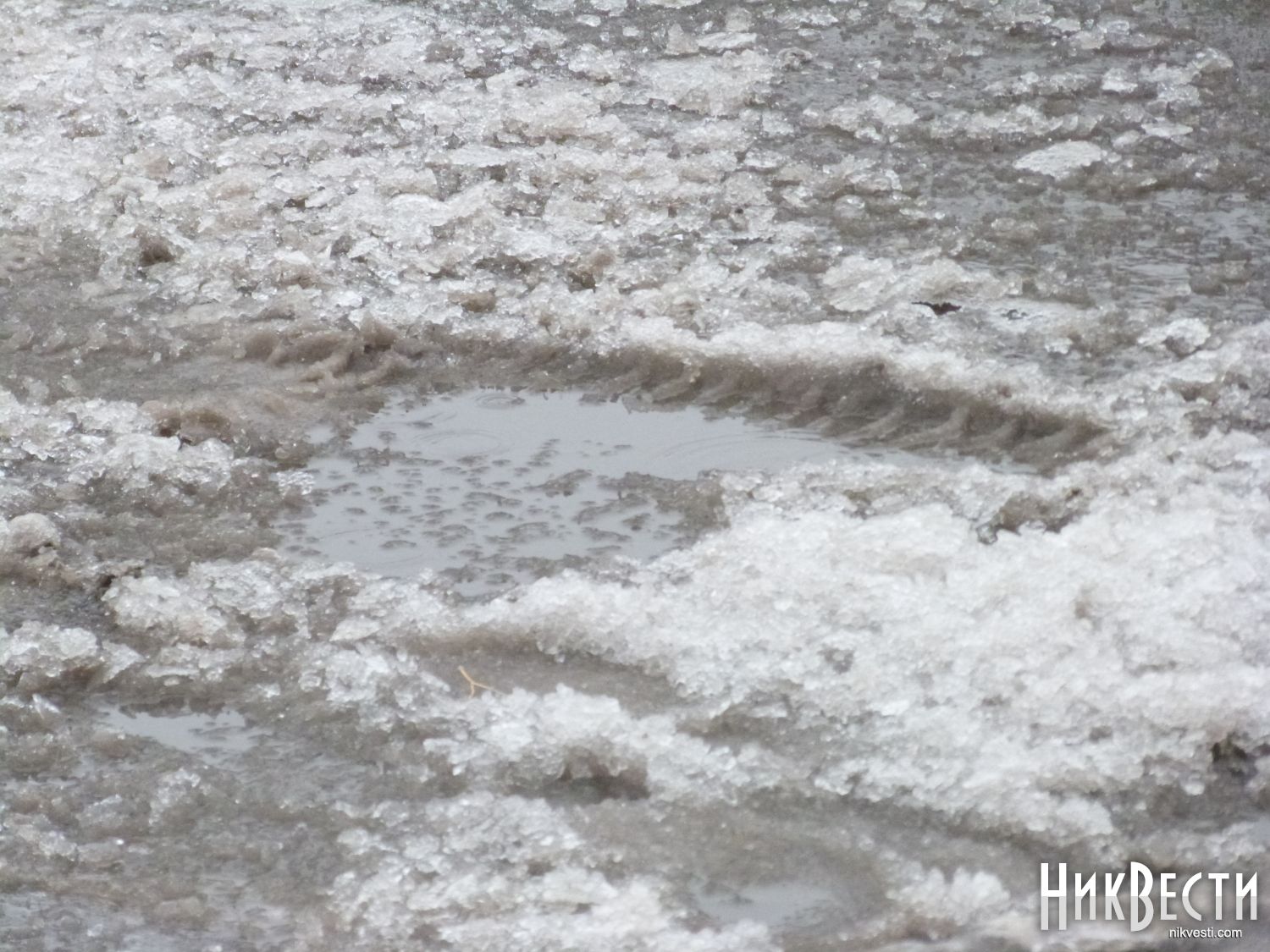 Из-за плюсовой температуры подтаивает выпавший ранее снег, передает корреспондент НикВестей.