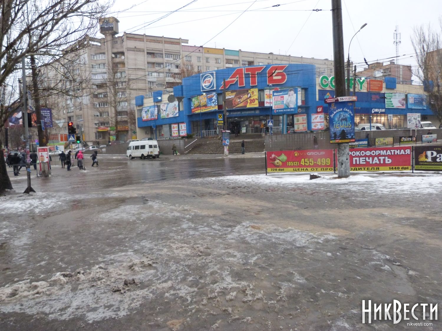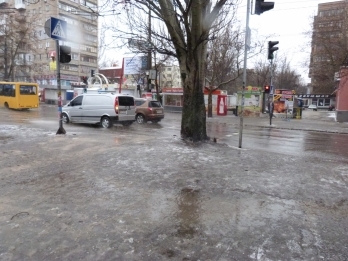 Сегодня, 7 января, в Николаеве с утра пошел сильный дождь, на дорогах и тротуарах образовались огромные лужи.