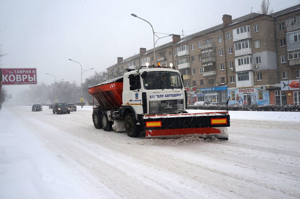 Расчистку дорожного покрытия от снега выполняют ОКП Николаевоблтеплоэнерго –3 единицы техники; Зоря-Машпроект – 1 единица техники; ЖКП «Пивдень» - 1 единица техники; ГКП «Николаевводоканал» – 2 единицы техники; ПАО «Николаевгаз» – 1 единица техники.