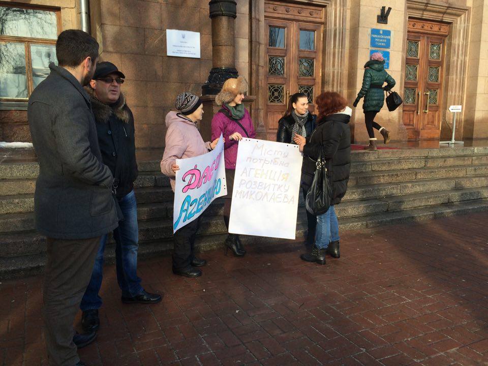 На всякий случай горожане приготовили два плаката: «Місту потрібна Агенція розвитку Миколаєва», «Даєш Агенцію!»