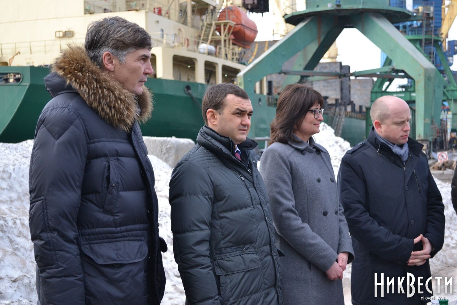 Отметим, заместителей министров сопровождал председатель Николаевской облгосдаминистрации Вадим Мериков, руководство терминалов, почетный президент Николаевского морского порта Василий Капацына, президент компании «Нибулон» Алексей Вадатурский, народный депутат Украины Александр Жолобецкий.