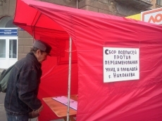 Активисты «Правого сектора» снесли палатку, в которой проводился сбор подписей против переименования улиц в Николаеве.