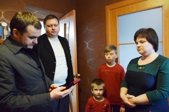 Вадим Мериков передал вдове Оксане орден «За мужество» ІІІ степени. Сыновьям 4-летнему Илье и 10-летнему Леониду привезли подарки: ноутбук, игрушки, сладости.