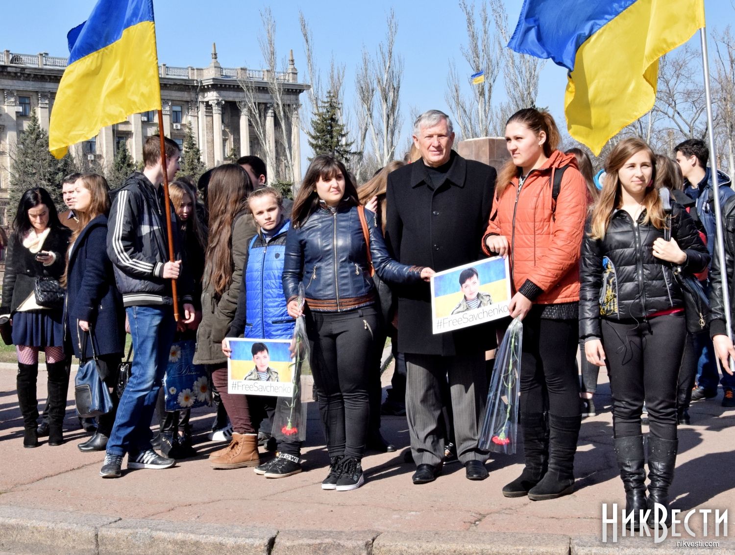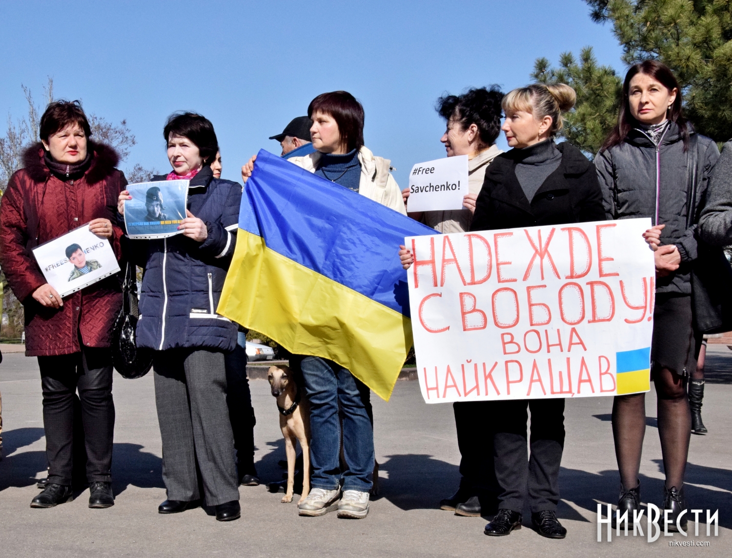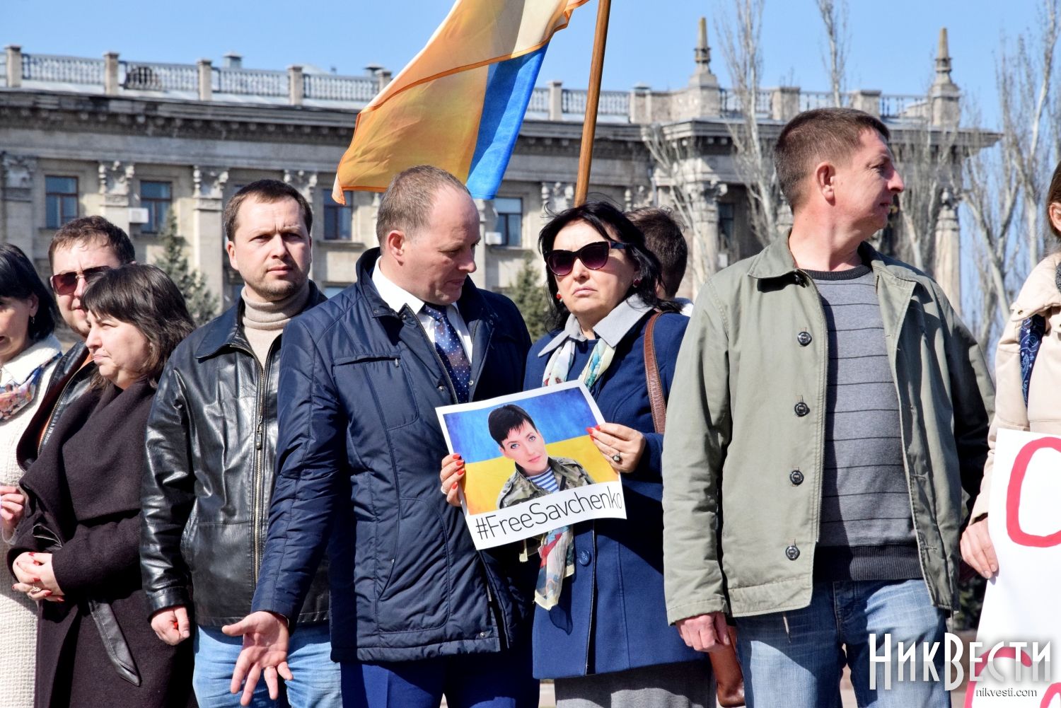 Сегодня, 9 марта, на главной площади города, более 100 николаевцев вышли на акцию в поддержку голодающей в российском СИЗО украинской летчицы, народного депутата Украины Надежды Савченко.