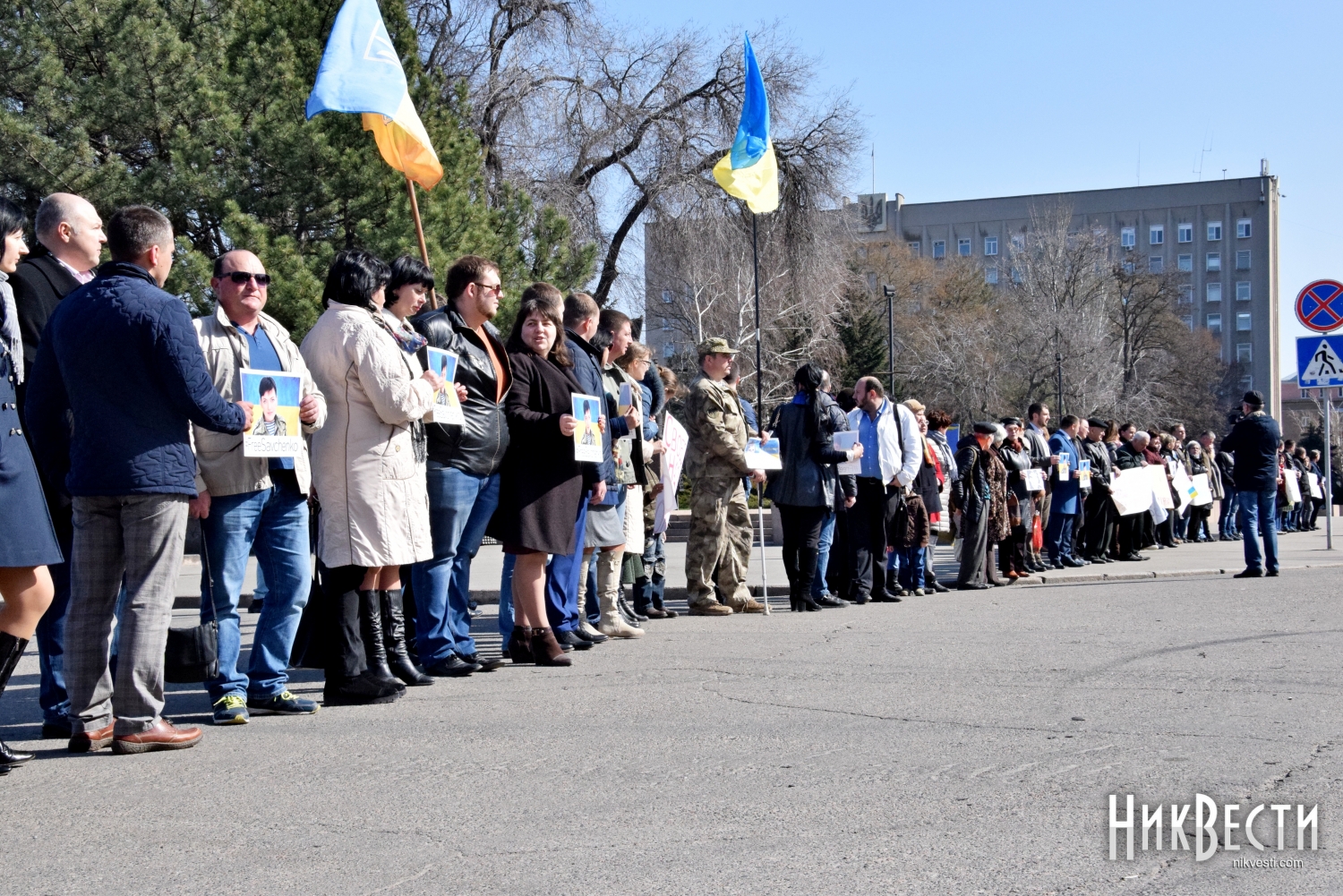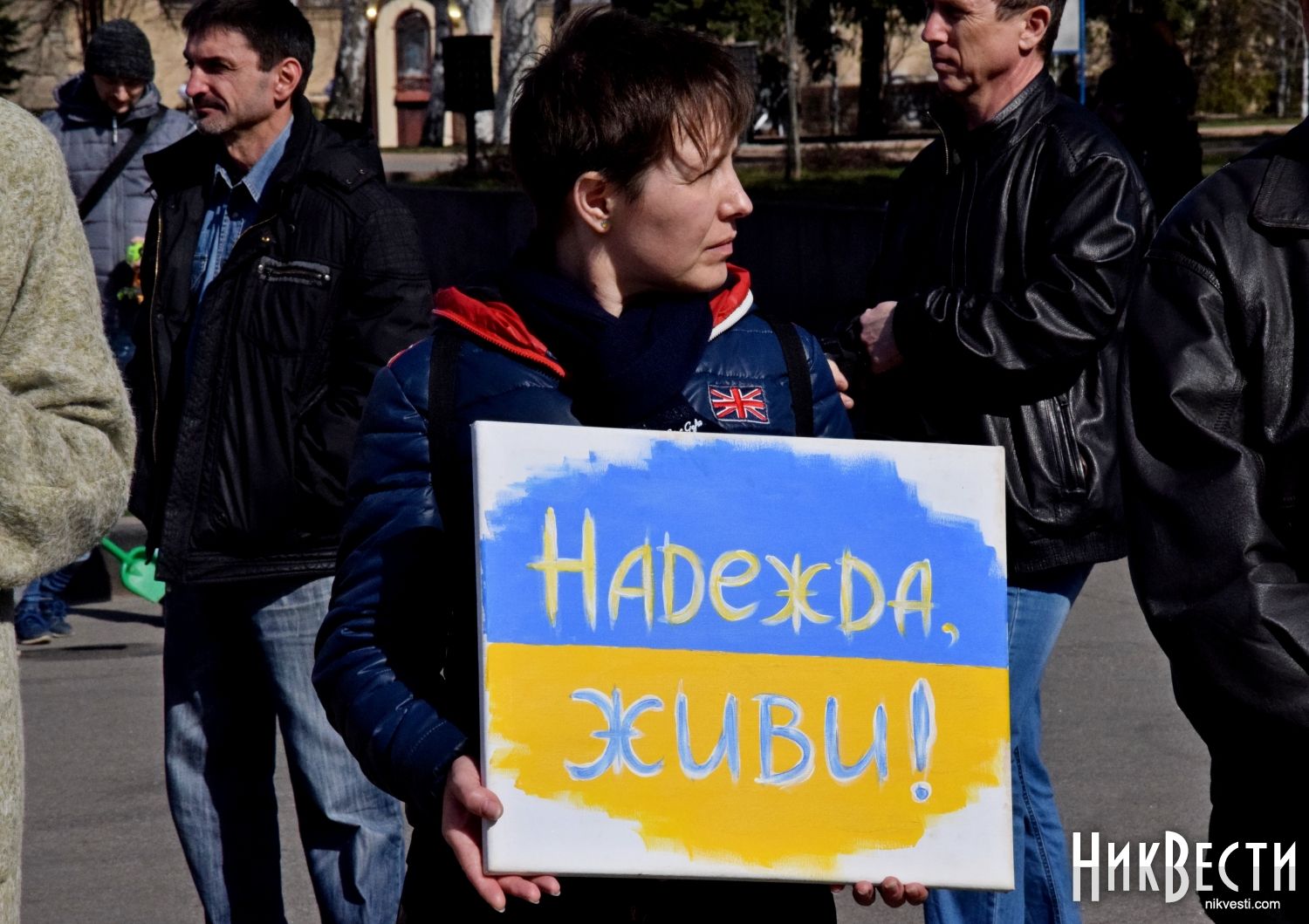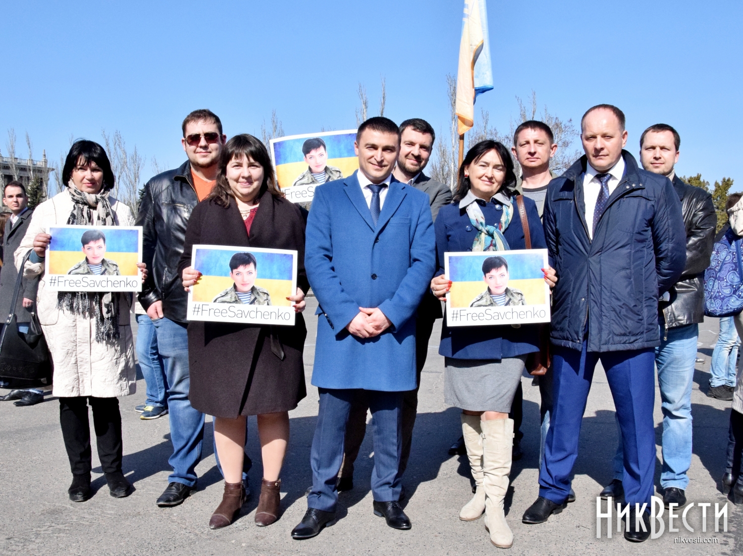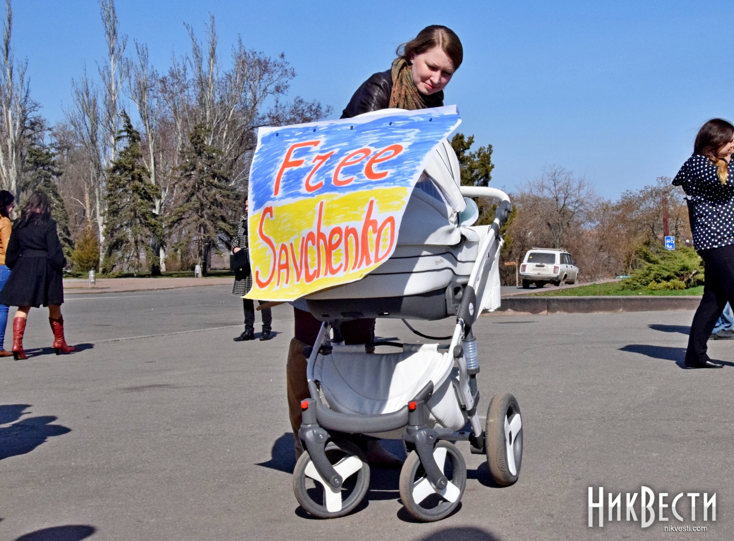 Сегодня, 9 марта, на главной площади города, более 100 николаевцев вышли на акцию в поддержку голодающей в российском СИЗО украинской летчицы, народного депутата Украины Надежды Савченко.