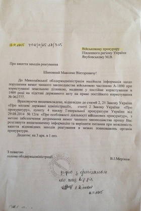 — В отличие от некоторых политиков, которые предпочитают только что-то рассказывать, но не считают необходимым официально обратиться в компетентные органы, я как губернатор привык работать исключительно в рамках закона и пользоваться теми инструментами, которые прописаны в законодательстве. Исходя из этого, мною был написан ряд обращений в правоохранительные органы относительно использования сельскохозяйственных земель министерства обороны в Николаевском и Веселиновском районах. Мне ответили, что открыто уголовное производство по части 2 статьи 364 Уголовного Кодекса Украины по факту злоупотребления служебными полномочиями, - отметил Вадим Мериков.