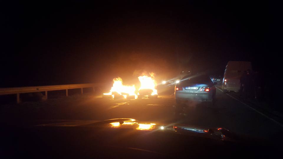 В пятницу вечером, 11 марта, неизвестные без опознавательных знаков жгли шины на дороге, чем на полчаса заблокировали движение на трассе «Николаев – Одесса».