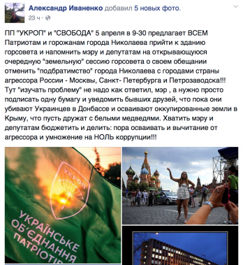 Организация политической партии «УКРОП» в Николаевской области заявляет, что не имеет отношения к проведению митинга, запланированного завтра, 5 апреля, в день проведения сессии городского совета.