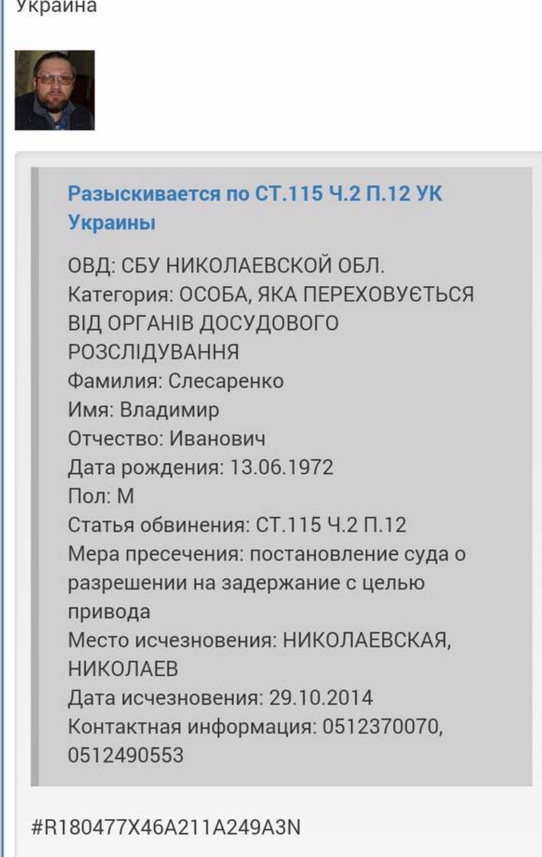 Речь идет о 42-летнем Владимире Слесаренко, который был обменян на украинских военных и через некоторое время объявился в Донецке, угрожая юридической ответственностью николаевским правоохранителям.