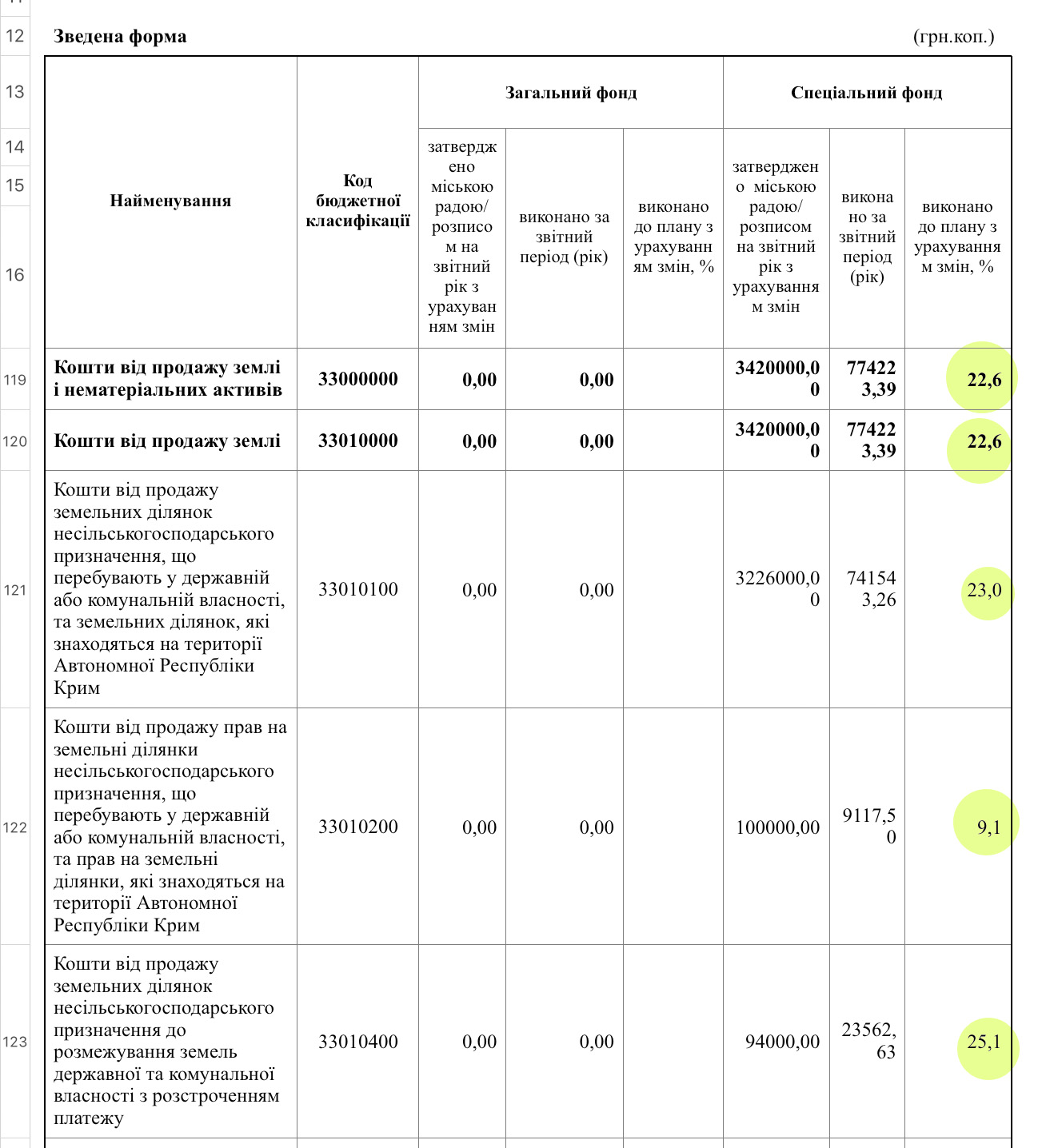 Самый худший показатель поступлений в бюджет от продажи земельных участков несельскохозяйственного назначения - всего 91 тысяча гривен, что составляет всего 9,1% от запланированного 1 миллиона.