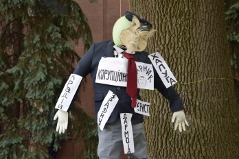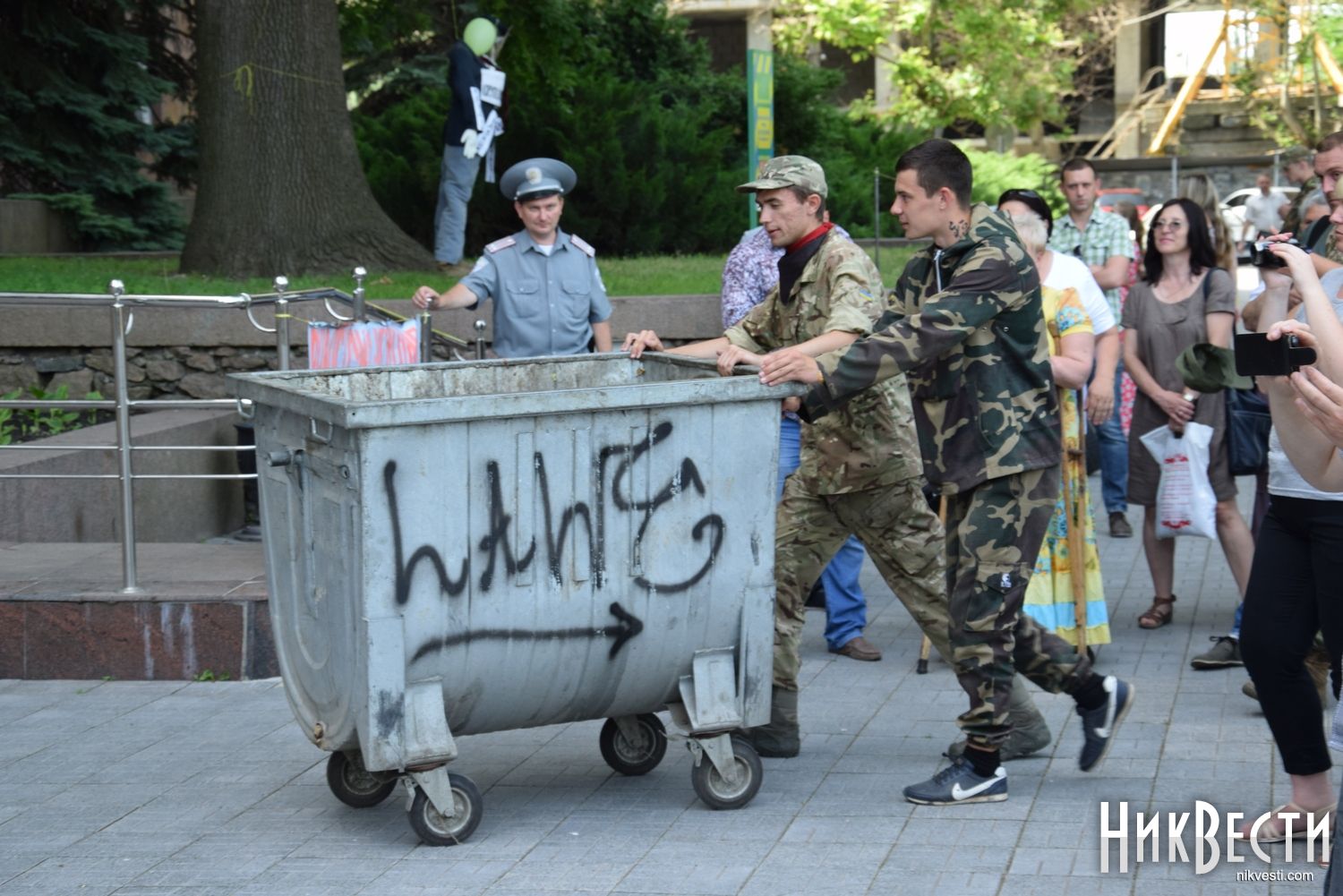 Ко всему протестующие подогнали мусорный бак под здание облгосадминистрации и анонсировали символические «похороны коррупционера» в 15:00.