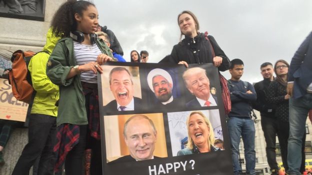 Нарисованные и написанные вручную плакаты в руках демонстрантов гласили, например: «Нам всем врали», «Иммигранты, добро пожаловать», «Лондон - европейский город», «Я не выйду из моей Европы».