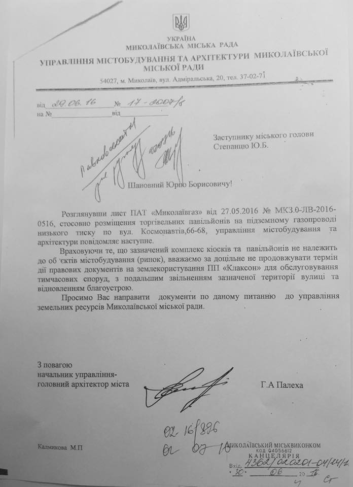 Главный архитектор Николаева Анна Палеха направила на имя вице-мэра Юрия Степанца рекомендацию об отказе продления срока аренды земельных участков по улице Космонавтов, 66-68, на котором располагается рынок «Клаксон».