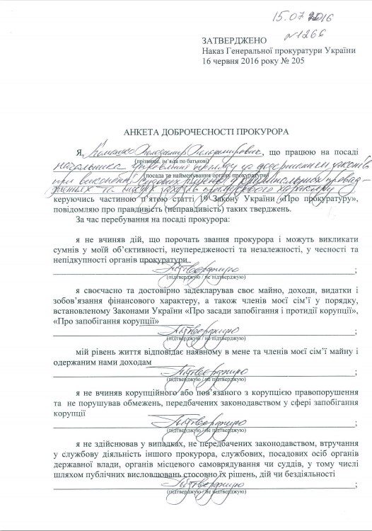 Отметим, что Владимир Комашко также запомнил анкету добропорядочности.
