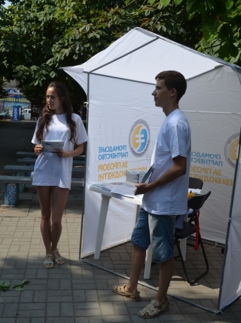 В Каштановом сквере горожан агитируют за открытый и прозрачный бюджет города