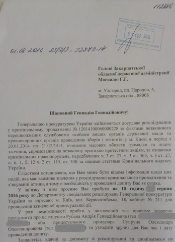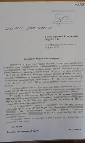 Генеральная прокуратура вызывает на допрос председателя Верховной Рады Андрея Парубия и председателя Закарпатской областной государственной администрации Геннадия Москаля по делу о преступлениях против участников Евромайдана в январе-феврале 2014 года.