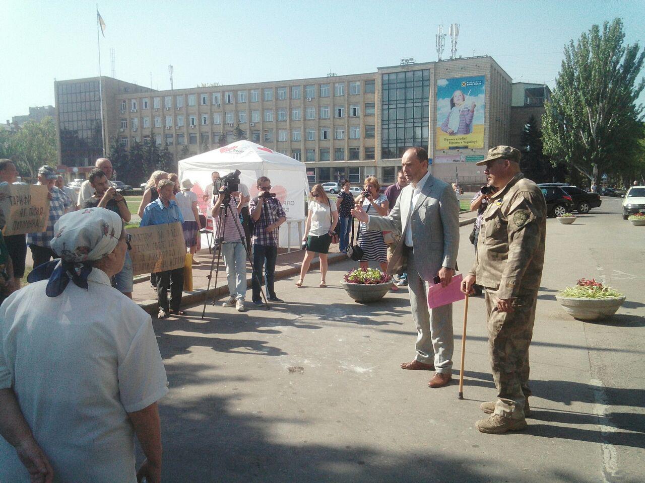 Позже к митингующим вышел первый заместитель председателя Николаевского областного совета Михаил Соколов. По его словам, он пришел на сессию настаивать на моратории, назвав тарифы «драконовскими».