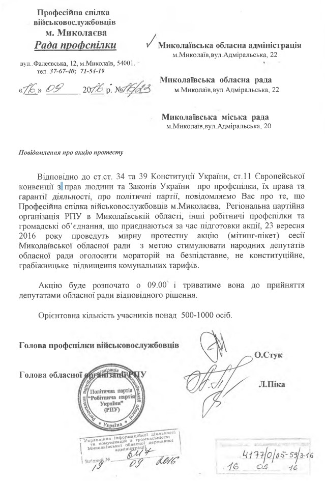 В распоряжение НикВестей попало соответствующее письмо с уведомлением об акции, подписанное председателем Николаевской региональной организации Рабочей партии Украины Владимиром Пикой.